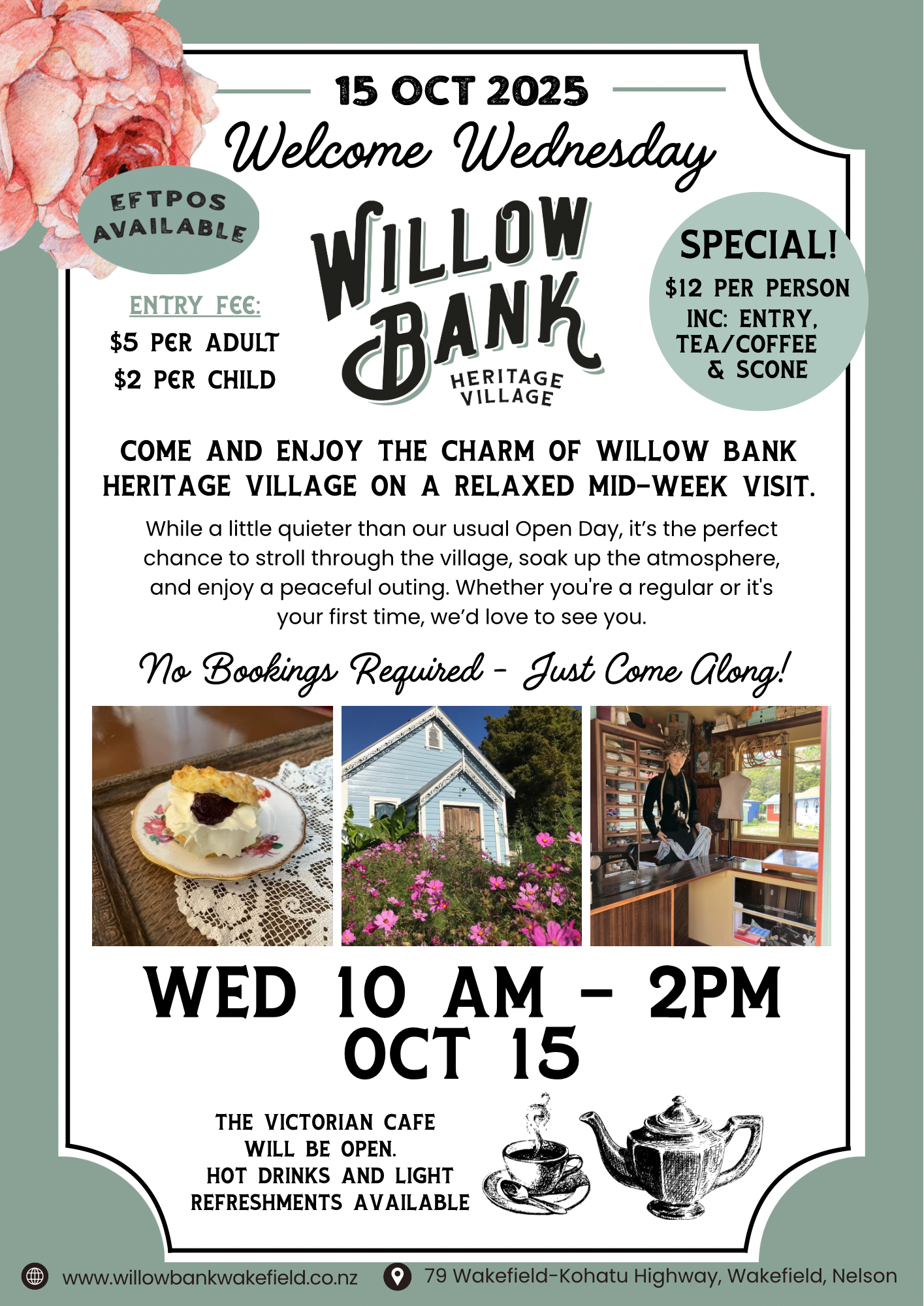 Come and enjoy the charm of Willow Bank Heritage Village on a relaxed mid-week visit.