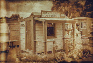 We use the little building as our post office bank. Nelson Provincial Museum supplied us with a close-up of the old Collingwood post office sign and I replicated it.