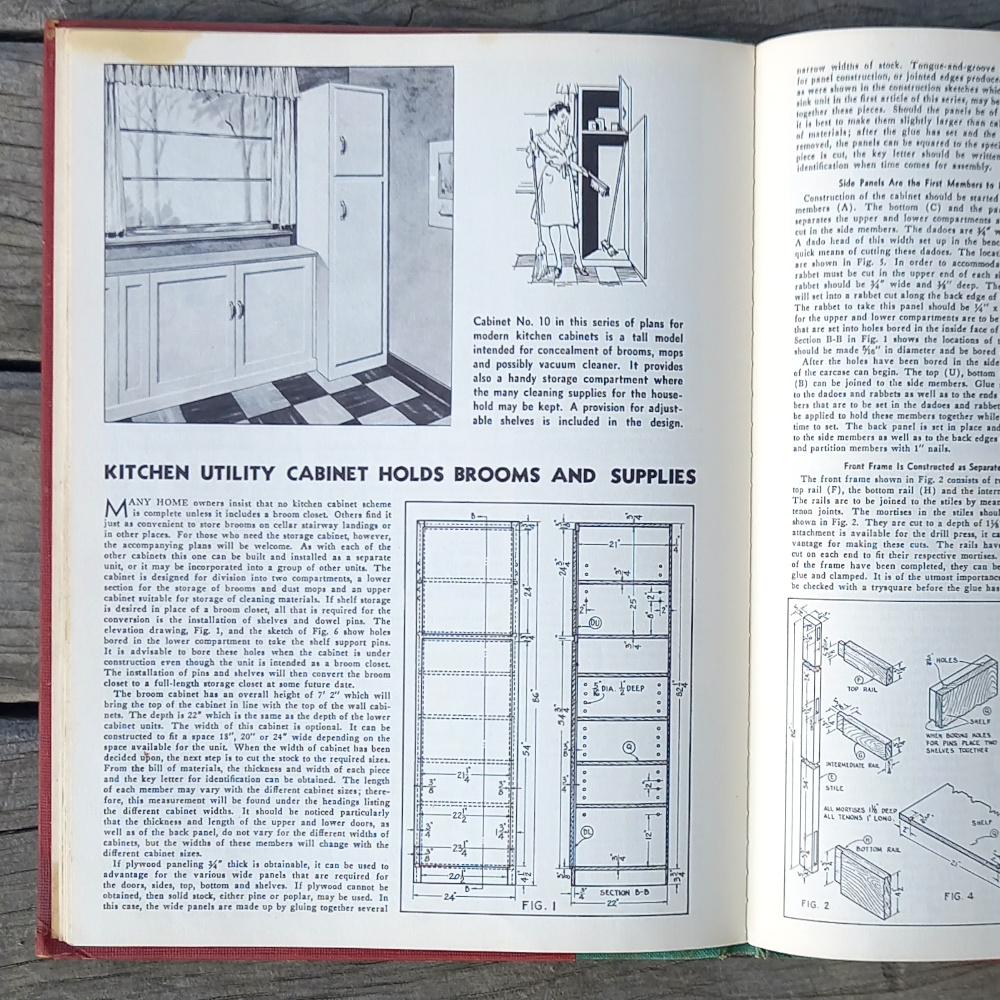Description: Complete instructions, working drawings, and material lists for the eleven most popular styles in sizes for every kitchen. This book is a vintage kitchen reference from 1948.