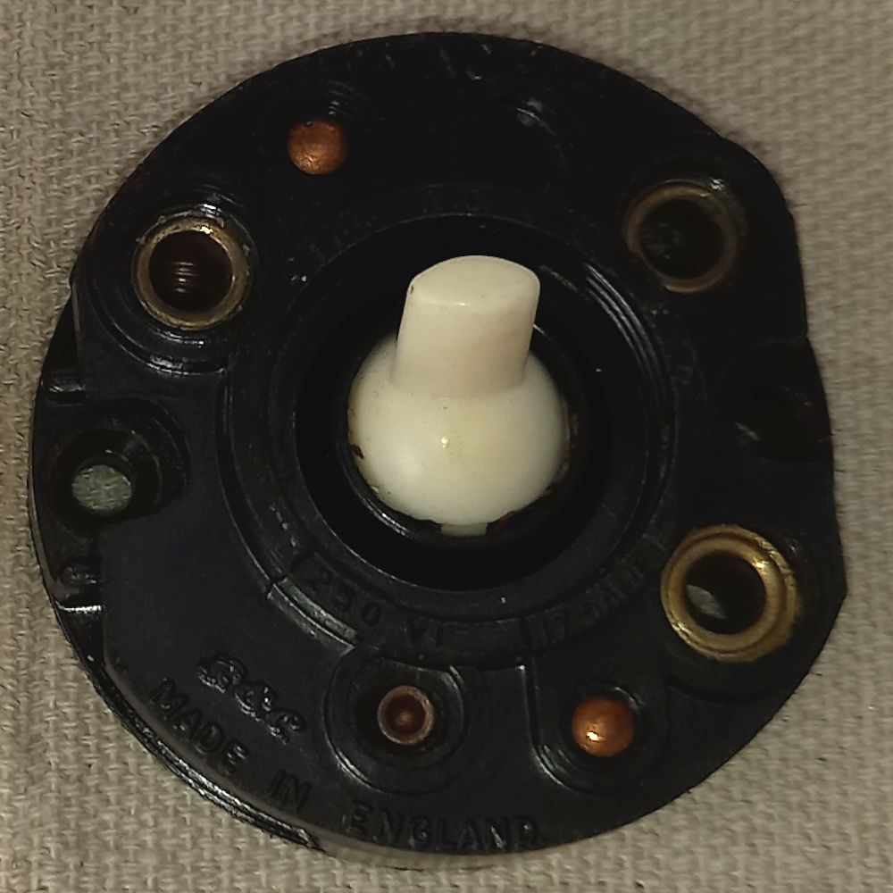 Marking on inside of switch: for AC only, 250V, 17.5A, GEC made in England