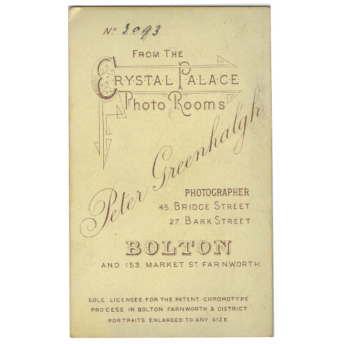 Peter Greenhalgh was a 19th‑century English photographer working in Bolton and nearby Farnworth in Lancashire during the later Victorian period.