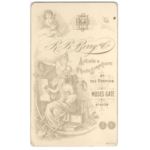 R. B. Berry & Co. was a Victorian photography studio located in Moses Gate, near Bolton, England. The studio, later renamed R. B. Berry & Sons, was active in the late 19th century and is known for producing cabinet card and carte-de-visite portraits of men, women, and children from the local area.