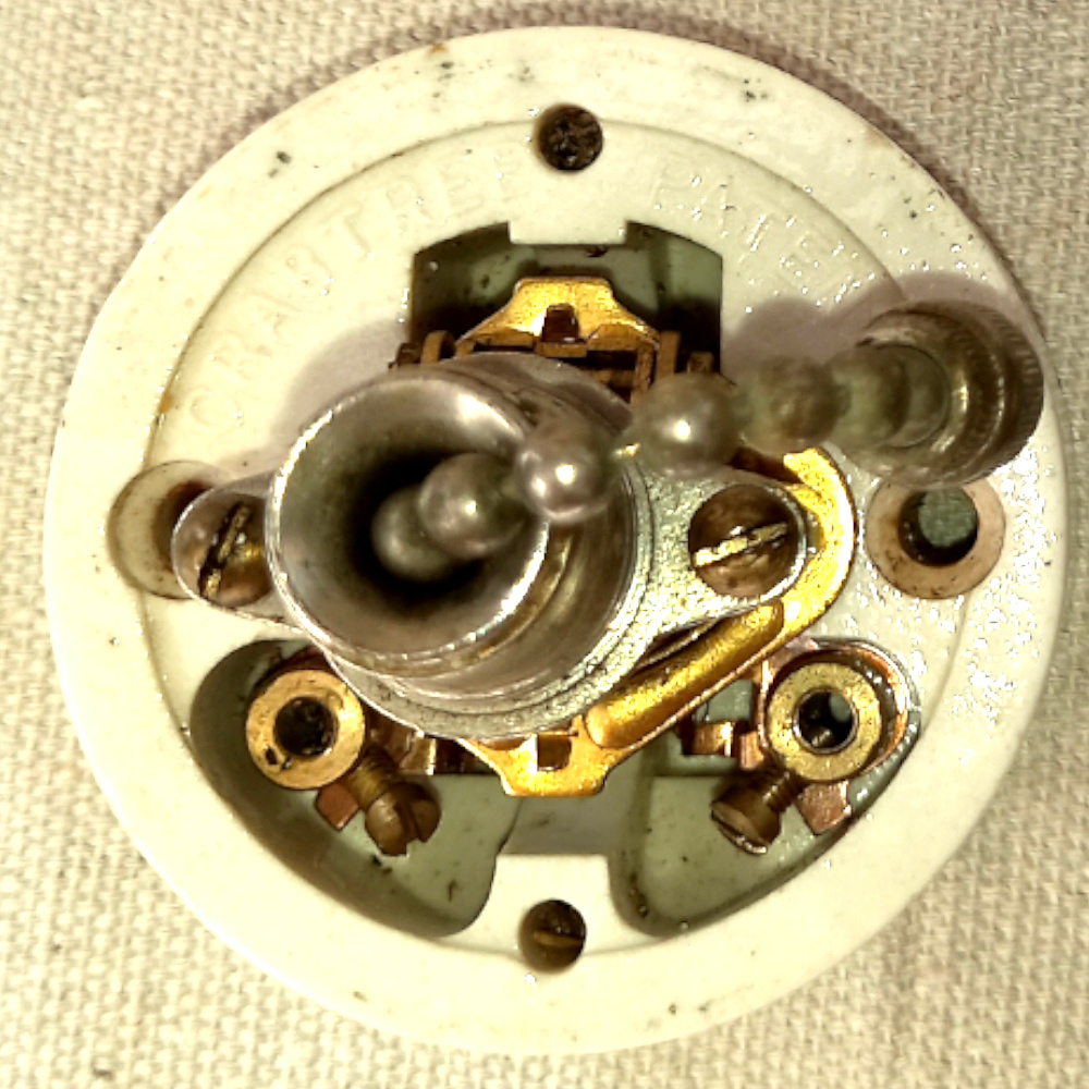 A Science Museum Group entry for a similar Crabtree switch from 1919 references “Patent C1100,” suggesting that this light switch was likely produced around 1919 or shortly thereafter.