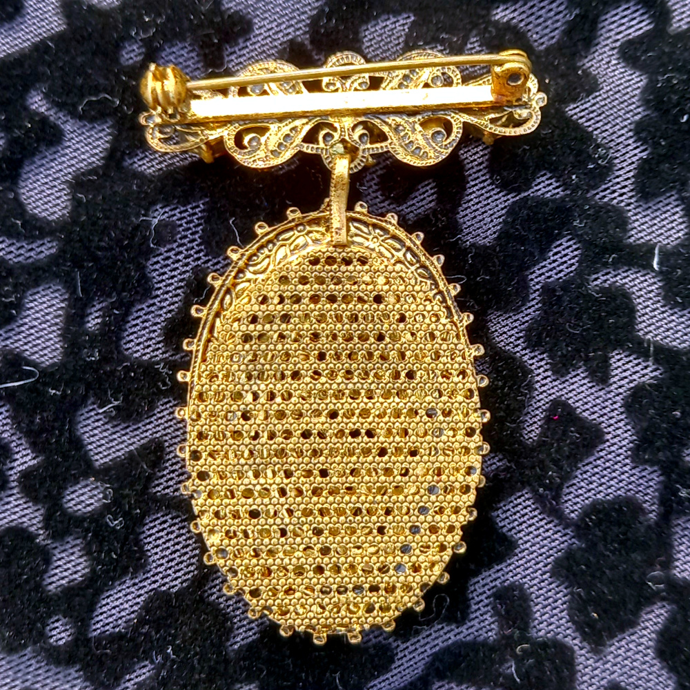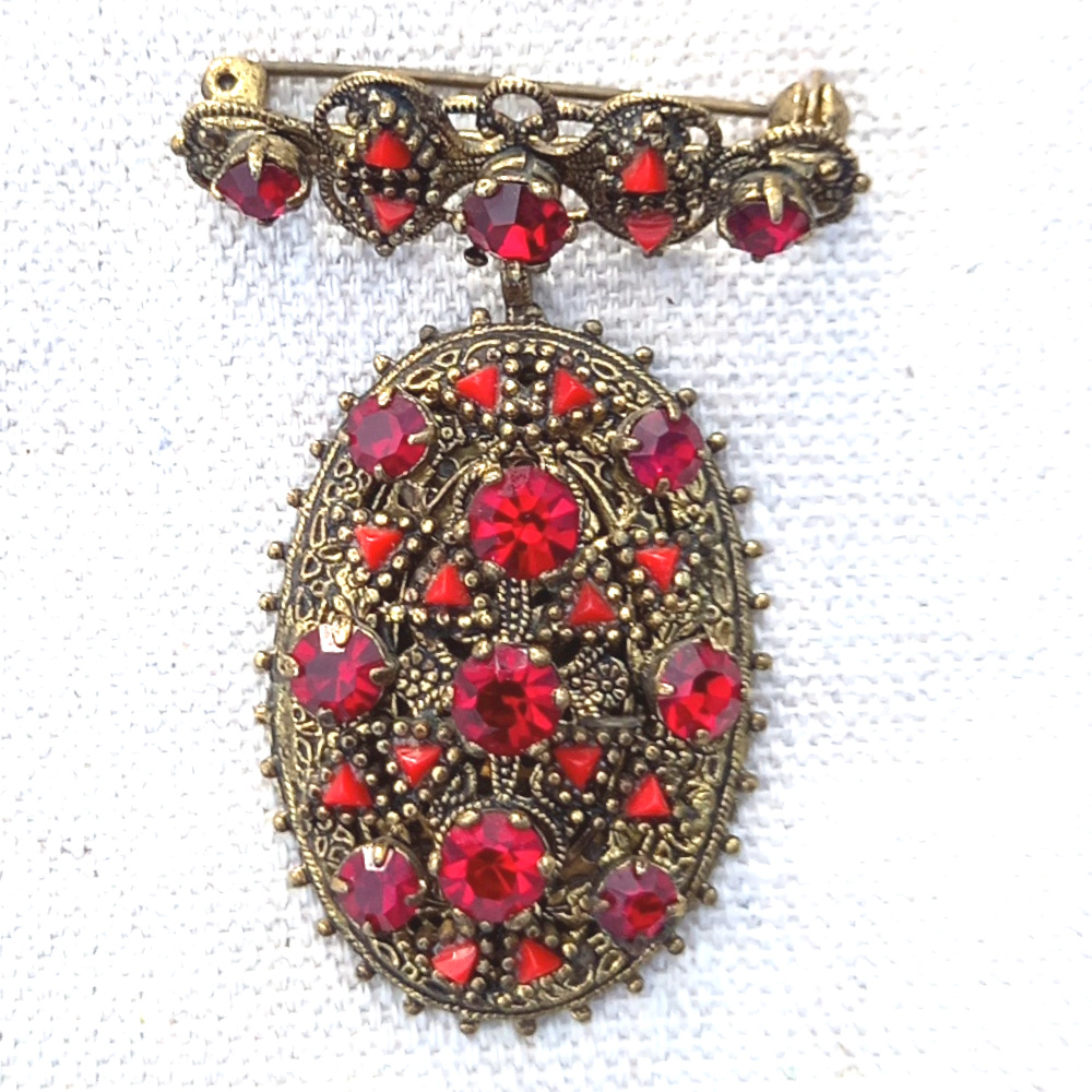 Vintage Dangle Brooch with Red Rhinestones (VCAJ-045)