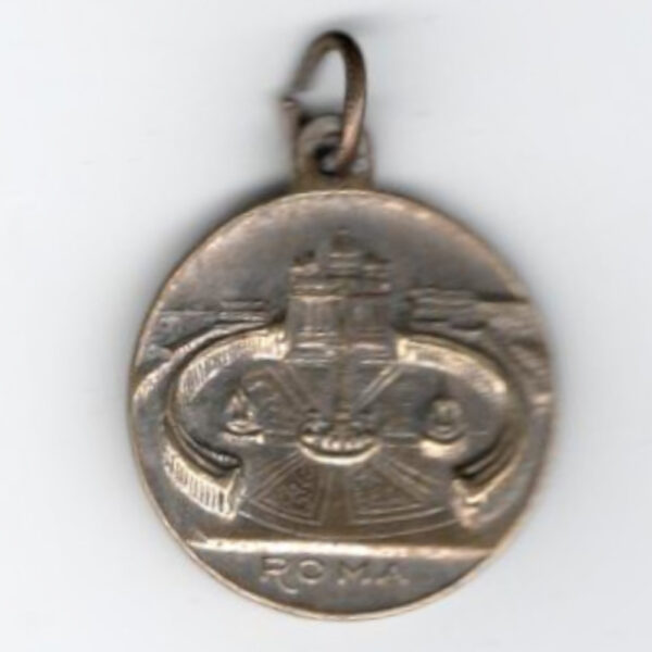 Description: Vintage silver-plated round pendant of Pope Pius X11 on one side and the Vatican on the other side.