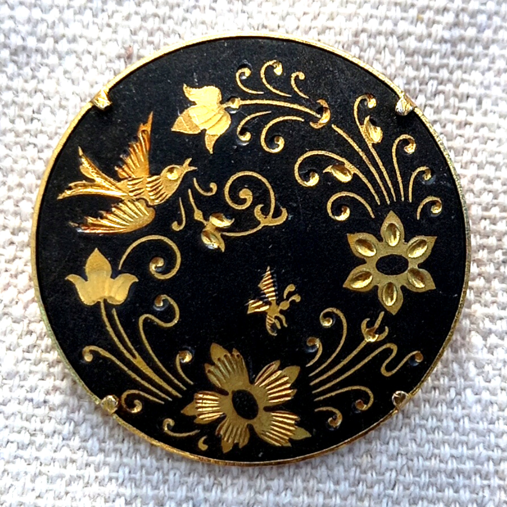 Vintage Toledo Damascene Brooch Round with Bird and Flowers (VCAJ-043)